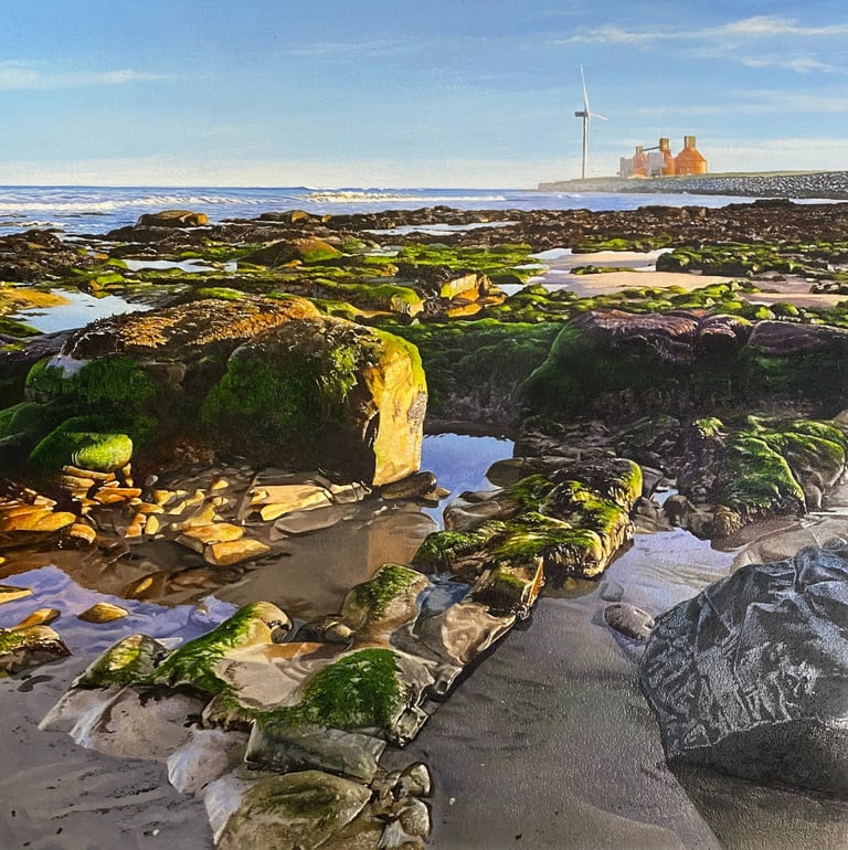 Mounted in a black vintage-mould frame with a silver-colour inlay.